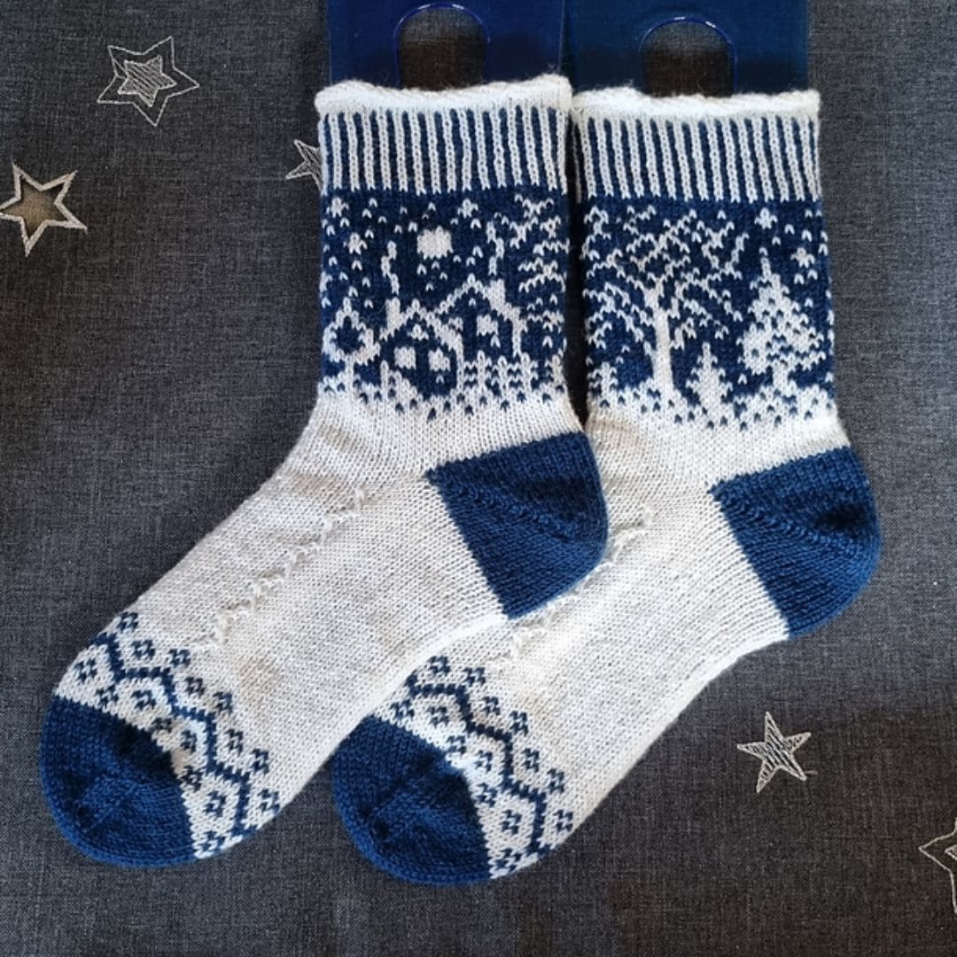 The "Christmas Shadow Night" pattern invites you to explore the shadows of Christmas night through a sock project steeped in mystery and magic. With touches of jacquard and striking contrasts, this design captures the wintery, festive mood of the season.