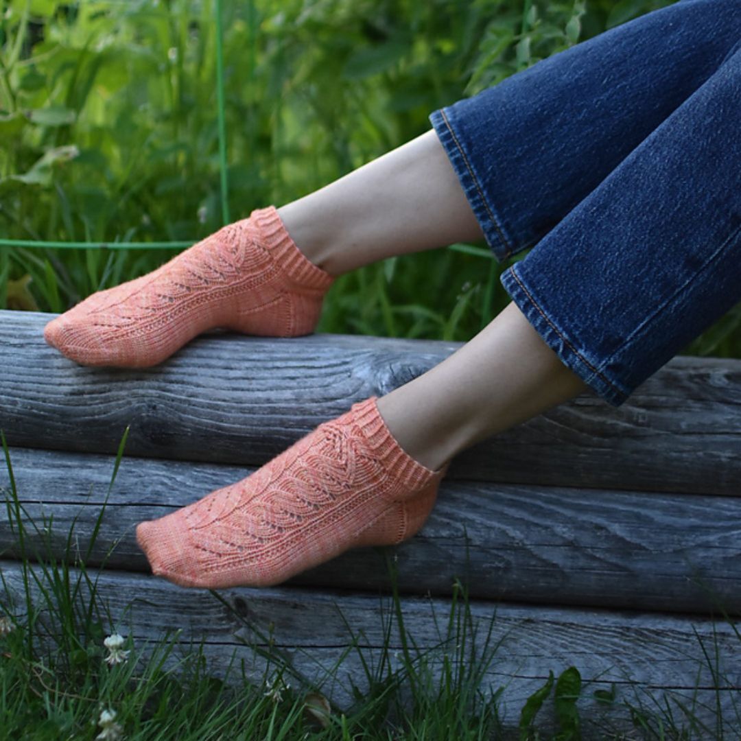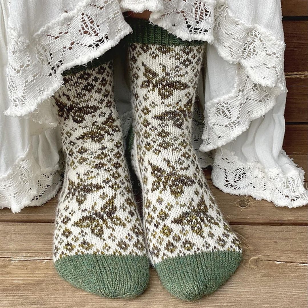 The jacquard pattern of these socks evokes the lightness of butterfly wings in a summer garden. A design full of finesse and contrasts, to knit the beauty of nature right onto your needles.
