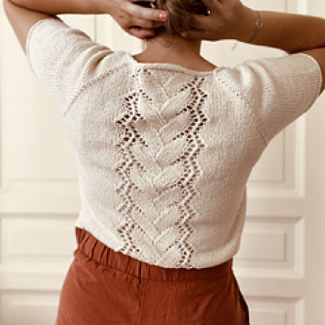 The SABAI top is a light and airy summer top with a boat neckline. It is very easy to knit, requires only a few techniques, and is therefore ideal for beginners.
