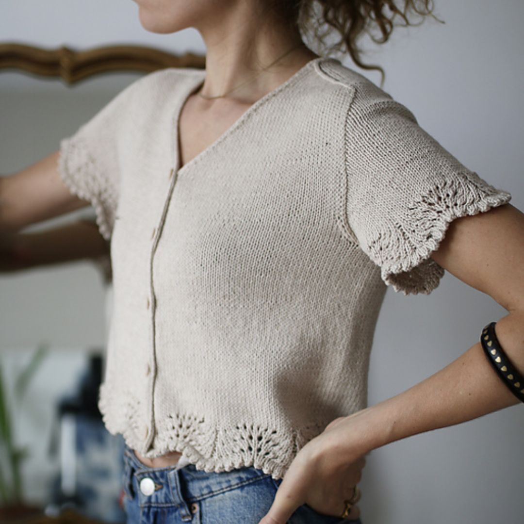 Lightweight, delicate, and feminine, this little cardigan is the perfect companion for sunny days. Its flowing knit and pretty openwork edging give it an irresistibly romantic touch. Wear it over a lightweight dress or high-waisted jeans for a fresh look.