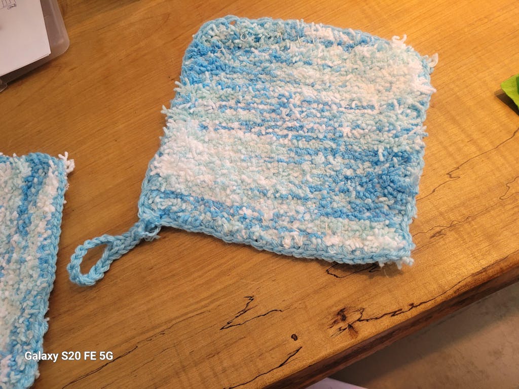 J'adore ce petit metier à tisser. Je tisse mes débarbouillettes et autres ça me permet de donner forme à des restants de laine.