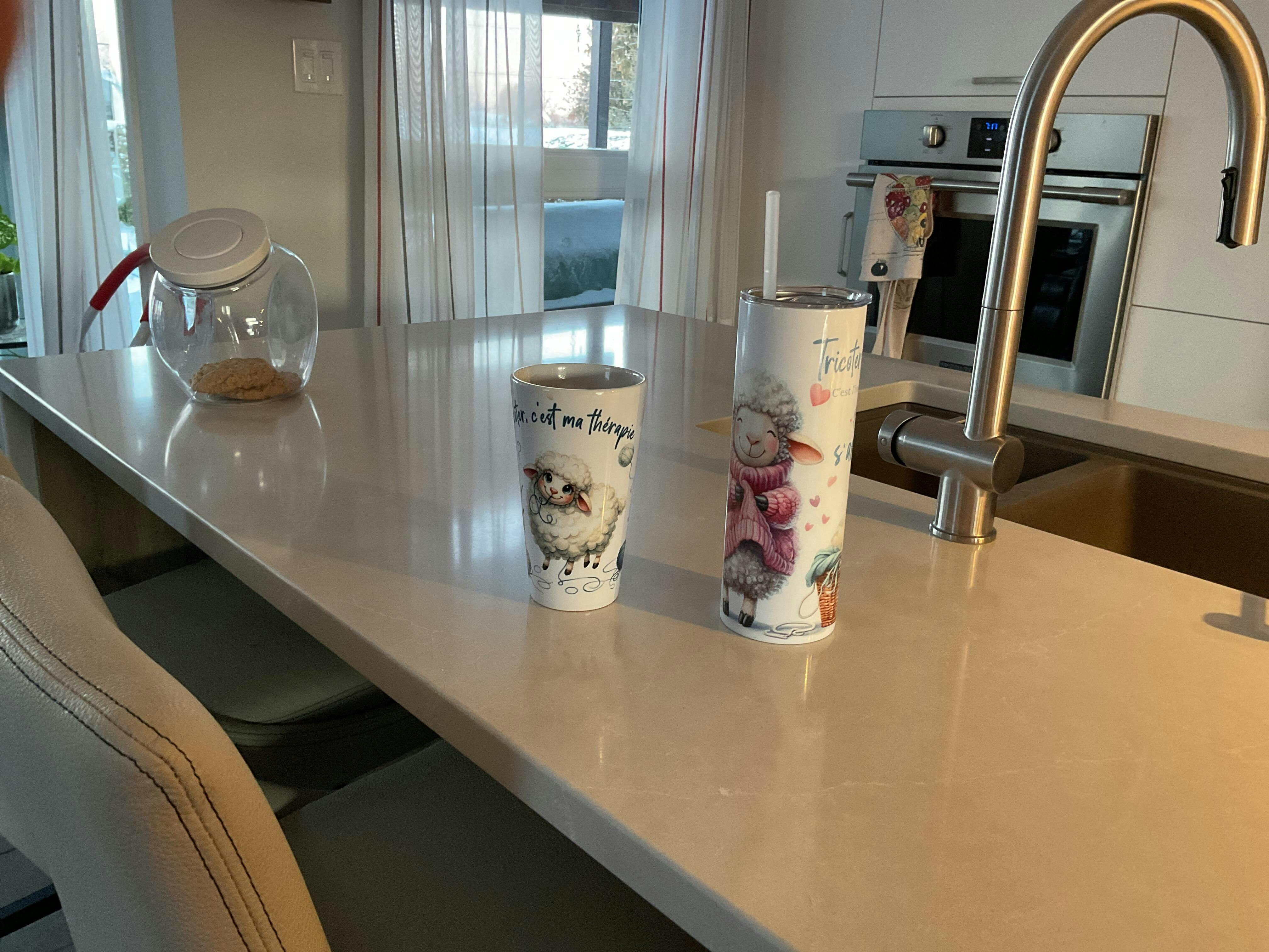 J'adore ces tasses thermos mais la crocheteuse en moi aurait aimé un modèle qui dit le crochet au lieu de tricot