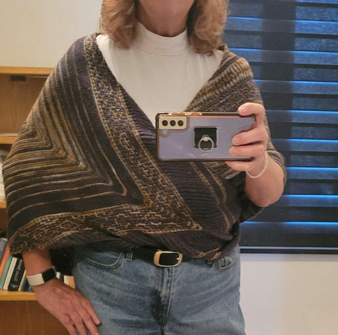 This shawl plays with contrasts: two colors meet and gradually follow one another, carried by an asymmetrical construction and a beautiful span. A design that's both playful to knit and refined to wear, allowing you to discover two captivating techniques: mosaic and Fisherman's Rib.